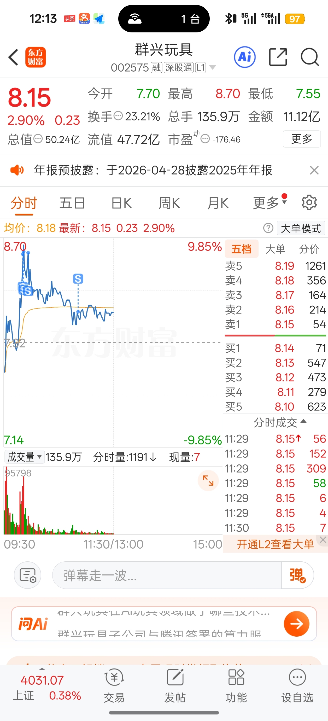 $群兴玩具(SZ002575)$ 拉那么高都不封板,那我先把它卖完!