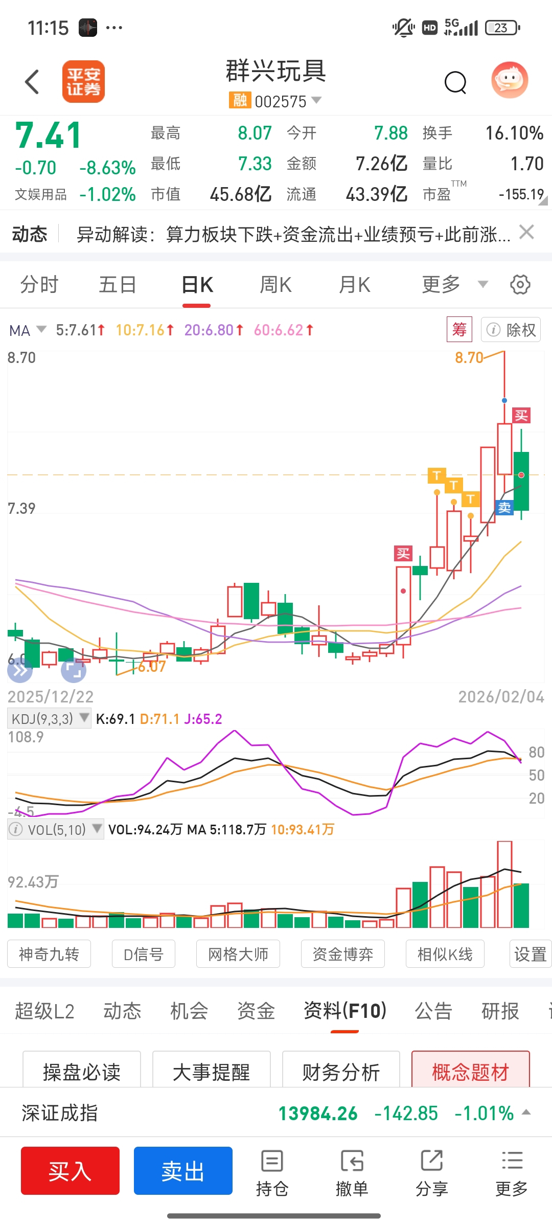 板块集体走弱,老庄出货。利润回撤,明日离场。回踩企稳后再来
