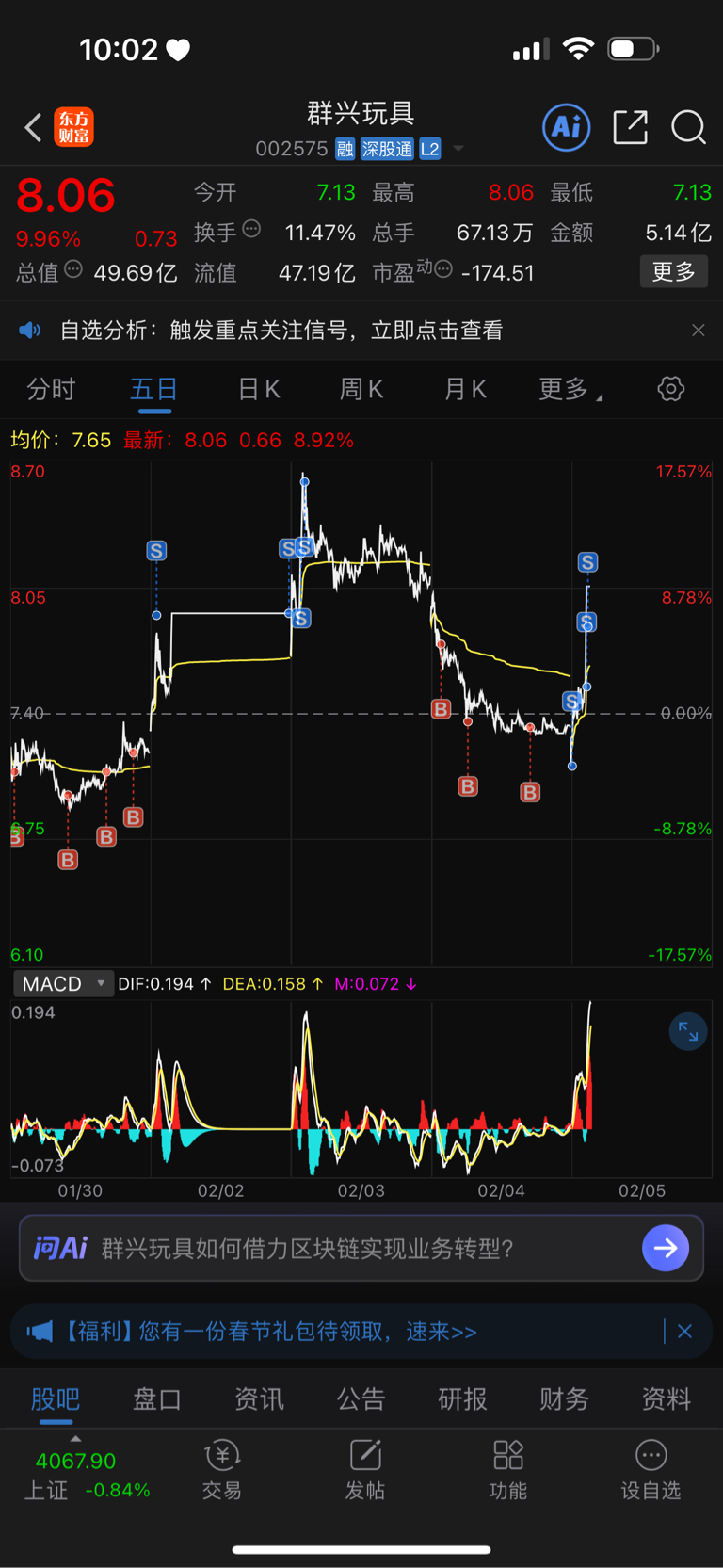 $群兴玩具(SZ002575)$ 唉,卖早了几秒……