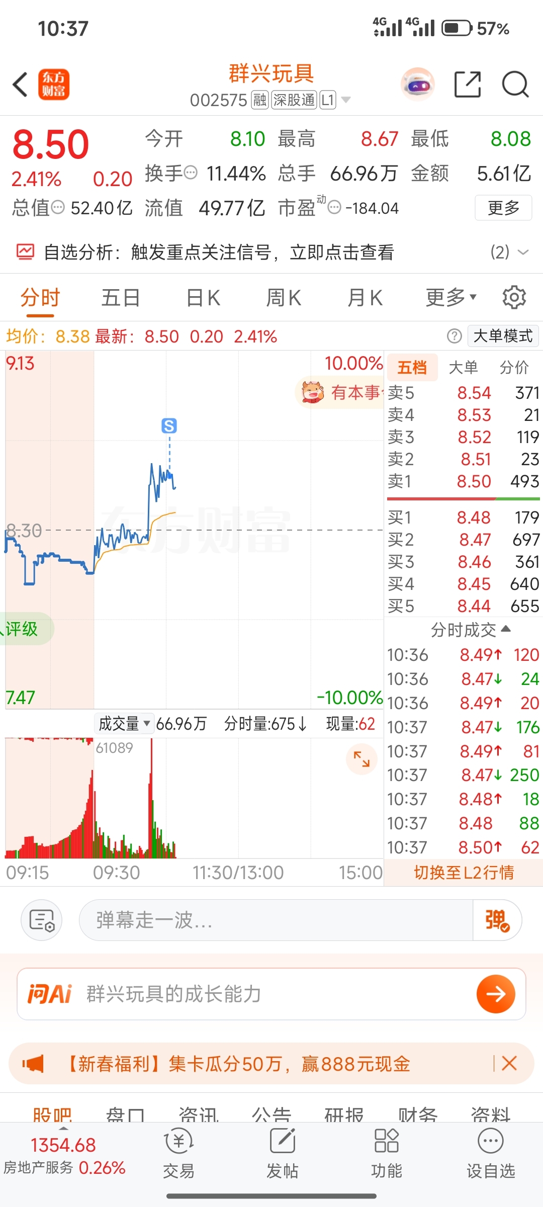 $群兴玩具(SZ002575)$ 今年的目标已完成,兄弟们明年见