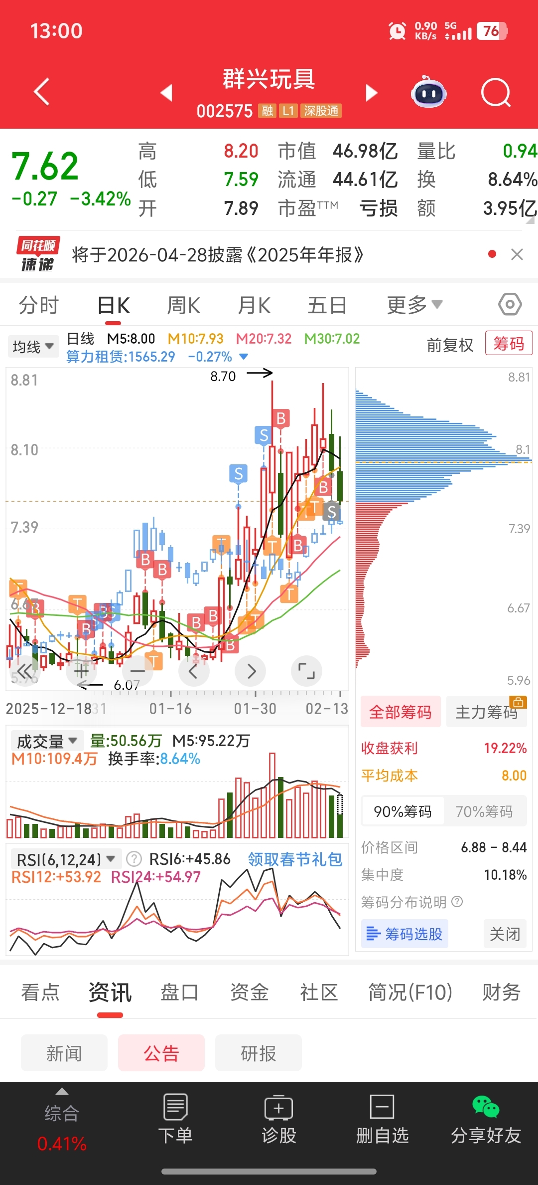 $群兴玩具(SZ002575)$ 这段时间涨幅确实有点大先清仓然后下到一定阶段的位置之后我再入手