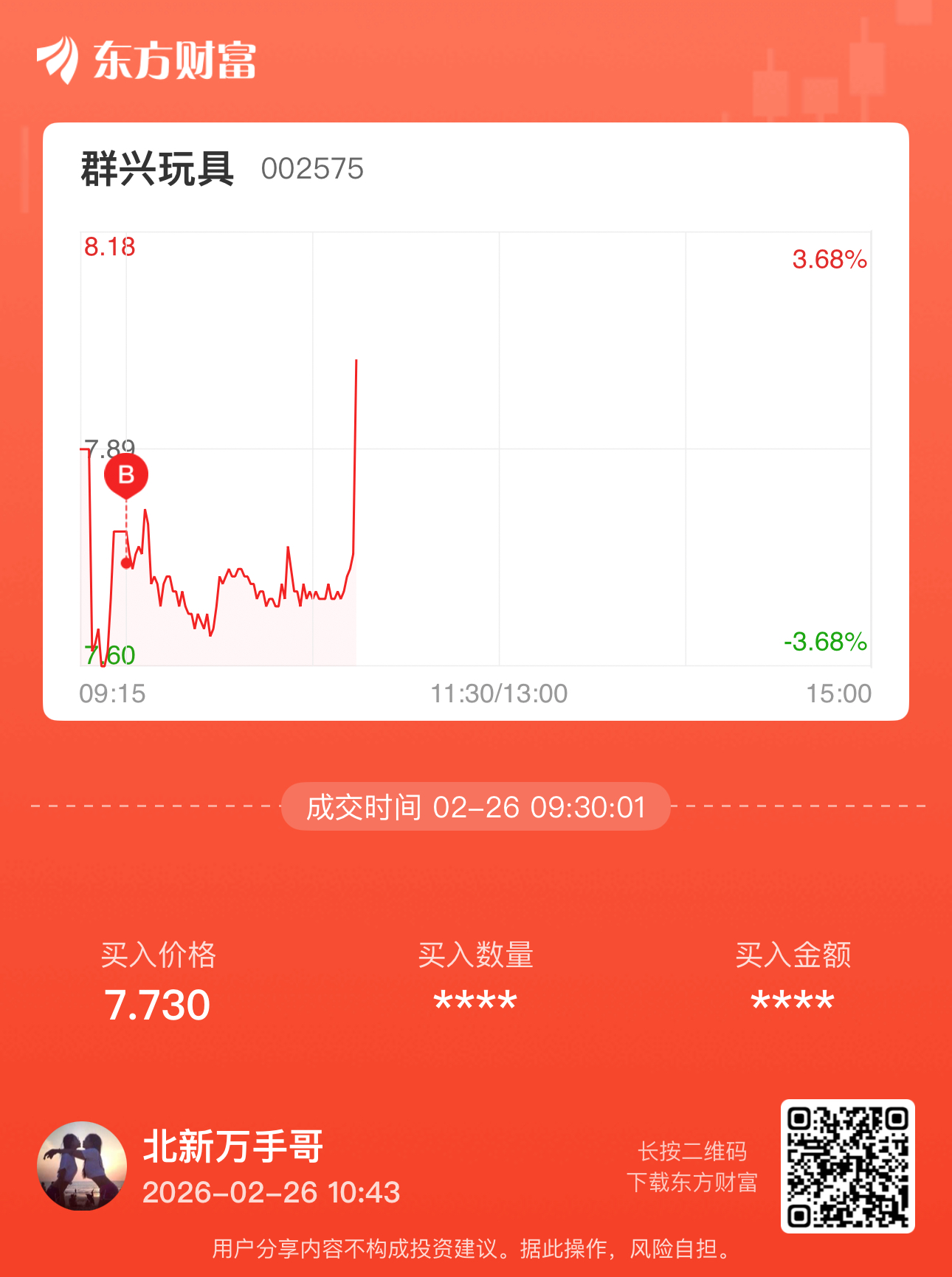 温馨提示: 1.根据《证券法》规定,禁止编造、传播虚假信息或者误导性信息,扰乱证券市场;2.用户在本社区发表的所有资料、言论等仅代表个人观点,与本网站立场无关,不对您构成任何投资建议。用户应基于自己的独立判断,自行决定证券投资并承担相应风险。《东方财富社区管理规定》
