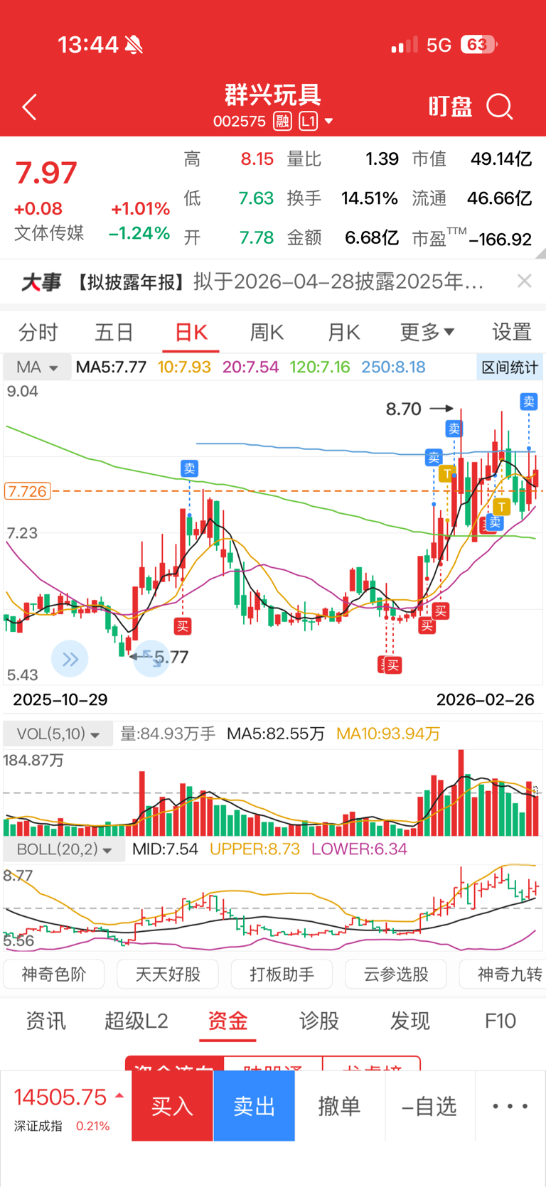 $群兴玩具(SZ002575)$ 昨天涨停卖了,今天7.72又接过来了,也不知道对错