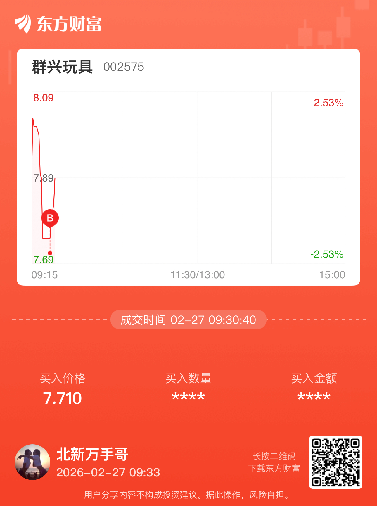 温馨提示: 1.根据《证券法》规定,禁止编造、传播虚假信息或者误导性信息,扰乱证券市场;2.用户在本社区发表的所有资料、言论等仅代表个人观点,与本网站立场无关,不对您构成任何投资建议。用户应基于自己的独立判断,自行决定证券投资并承担相应风险。《东方财富社区管理规定》
