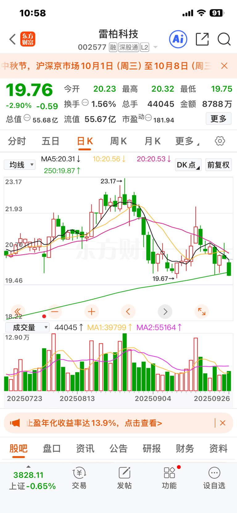 $雷柏科技(SZ002577)$ 跌破年线,必有大跌,坚决清仓,永不买入