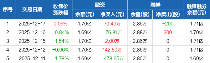 雷柏科技:融资净买入70.49万元,融资余额1.7亿元(12-17)