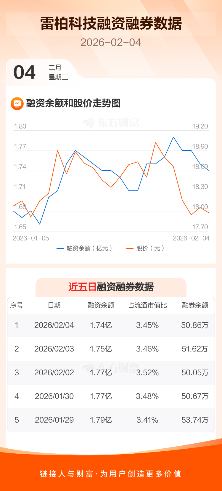 交易所最新数据显示,雷柏科技于2026年2月4日获融资买入238.11万元,融资偿还377.13万元,当日融资净偿还139.02万元。目前,该股融资余额1.74亿,占流通市值比例为3.45%。