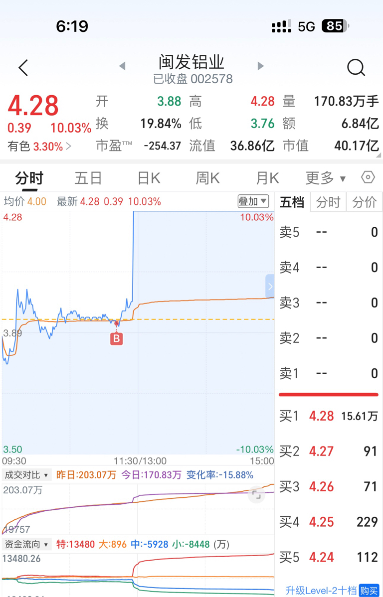 $闽发铝业(SZ002578)$ 不好意思各位,货太多,拉一下,让我出点