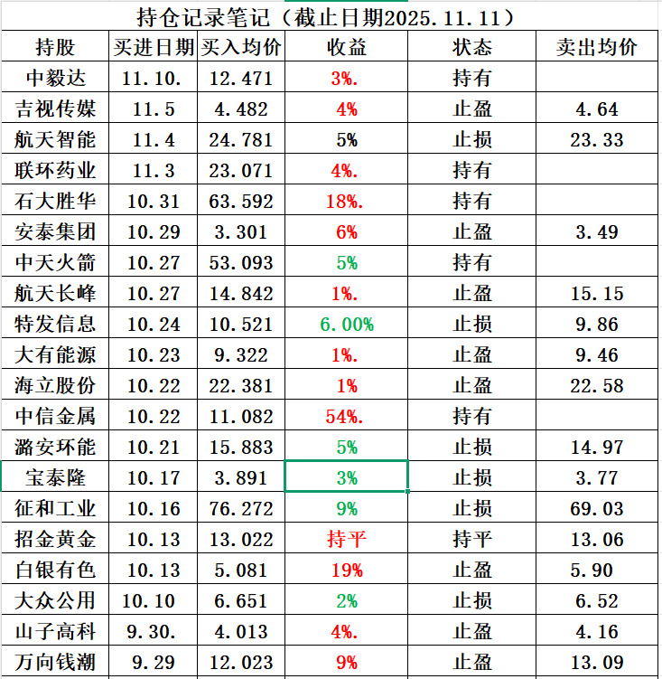 当前持仓情况(实时更新)