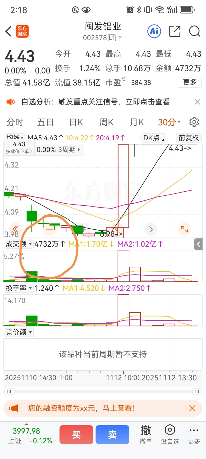 $闽发铝业(SZ002578)$ 涨停成交4000多万。正明大户在卖。明天高开卖点。低开买点。