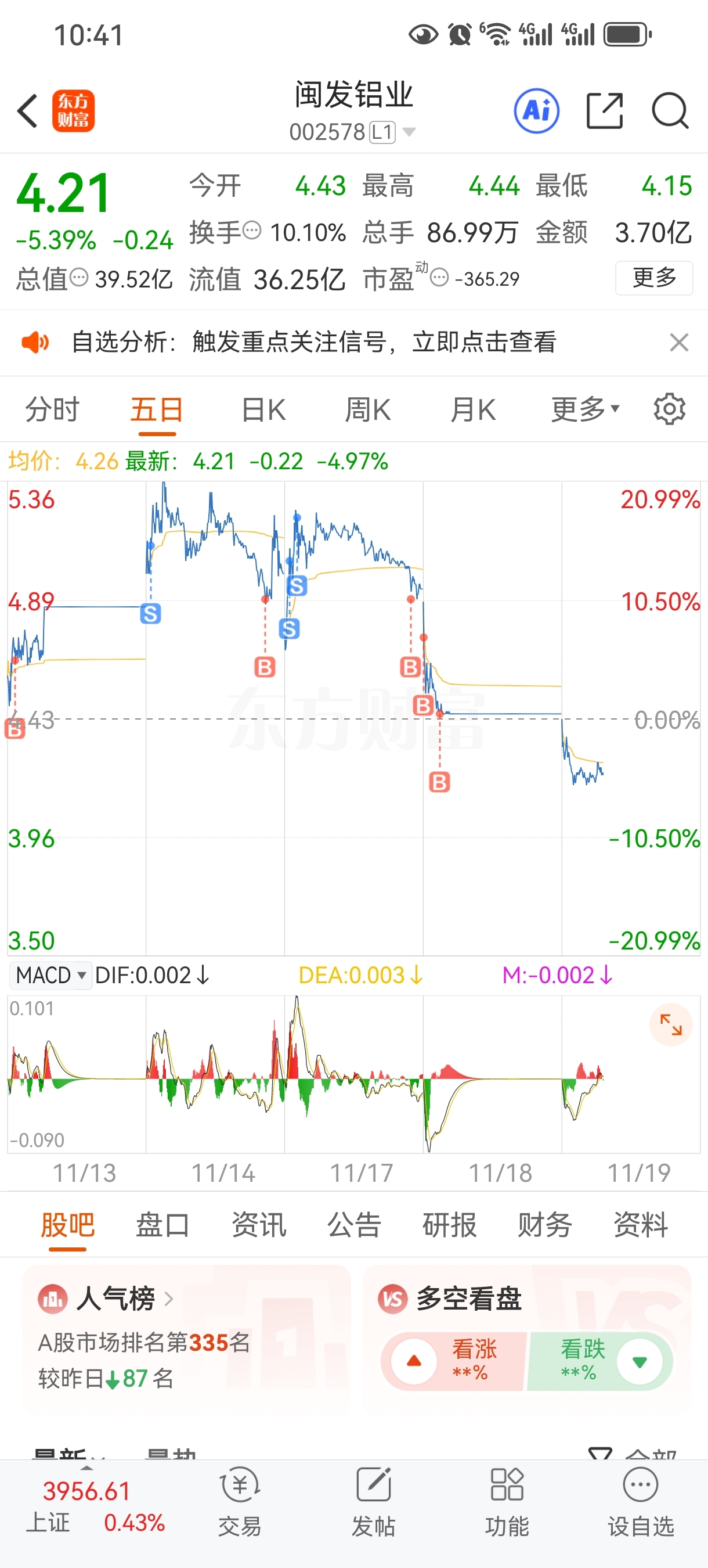 $闽发铝业(SZ002578)$ 今天挂的跌停继续买。