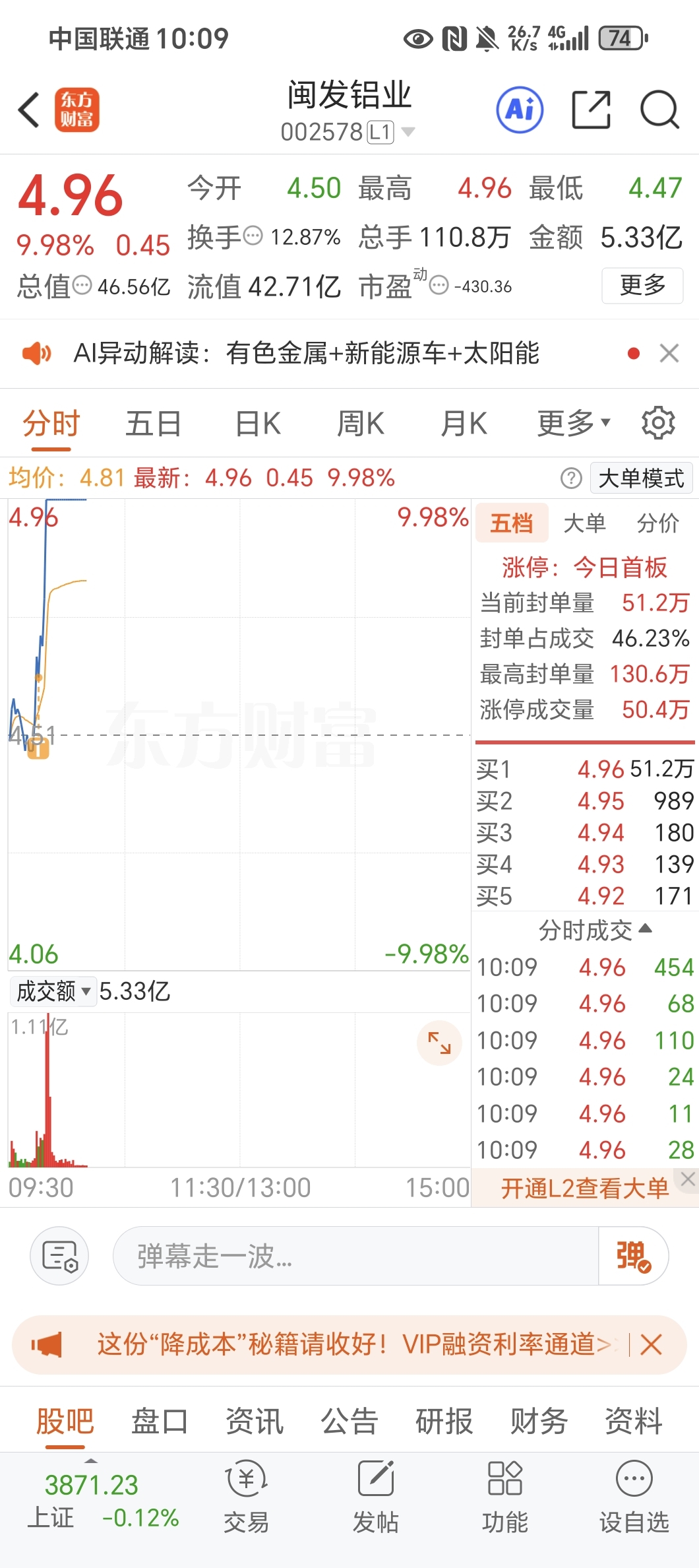 $闽发铝业(SZ002578)$ 三个点走了 卖飞了 留一百股等机会卷土重来