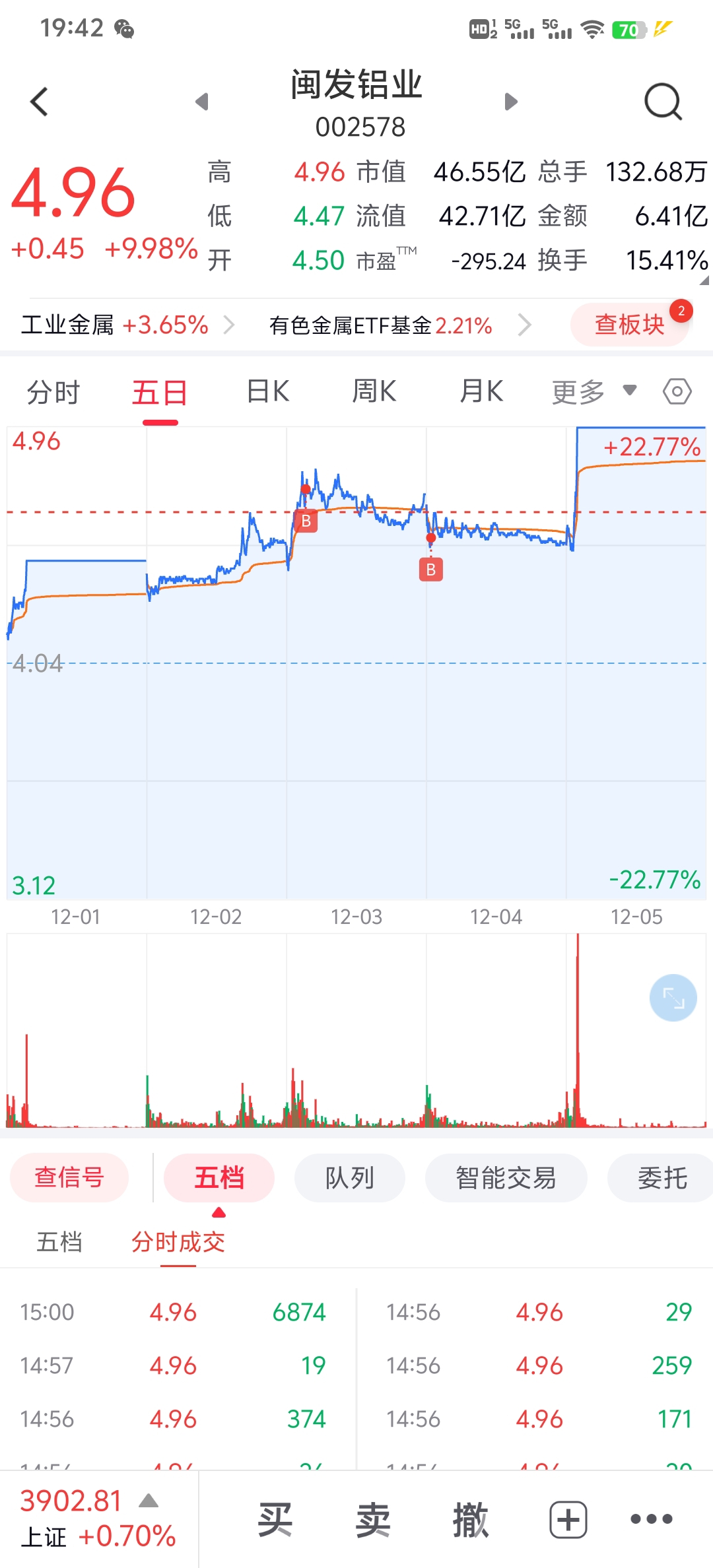 $闽发铝业(SZ002578)$ 哇。。。虽然才买了1.5万。。但情绪价值拉满。。。
