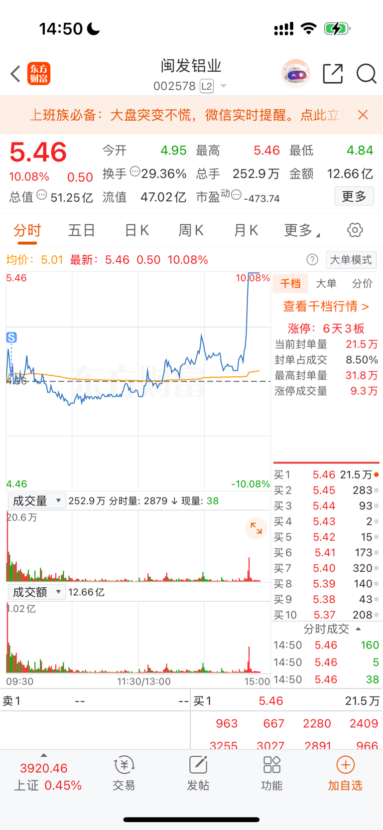 $闽发铝业(SZ002578)$ 麻了,少赚十几个