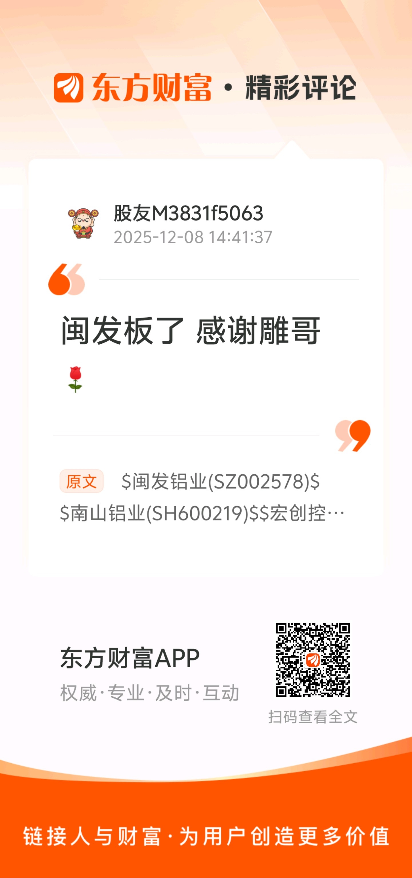 温馨提示: 1.根据《证券法》规定,禁止编造、传播虚假信息或者误导性信息,扰乱证券市场;2.用户在本社区发表的所有资料、言论等仅代表个人观点,与本网站立场无关,不对您构成任何投资建议。用户应基于自己的独立判断,自行决定证券投资并承担相应风险。《东方财富社区管理规定》