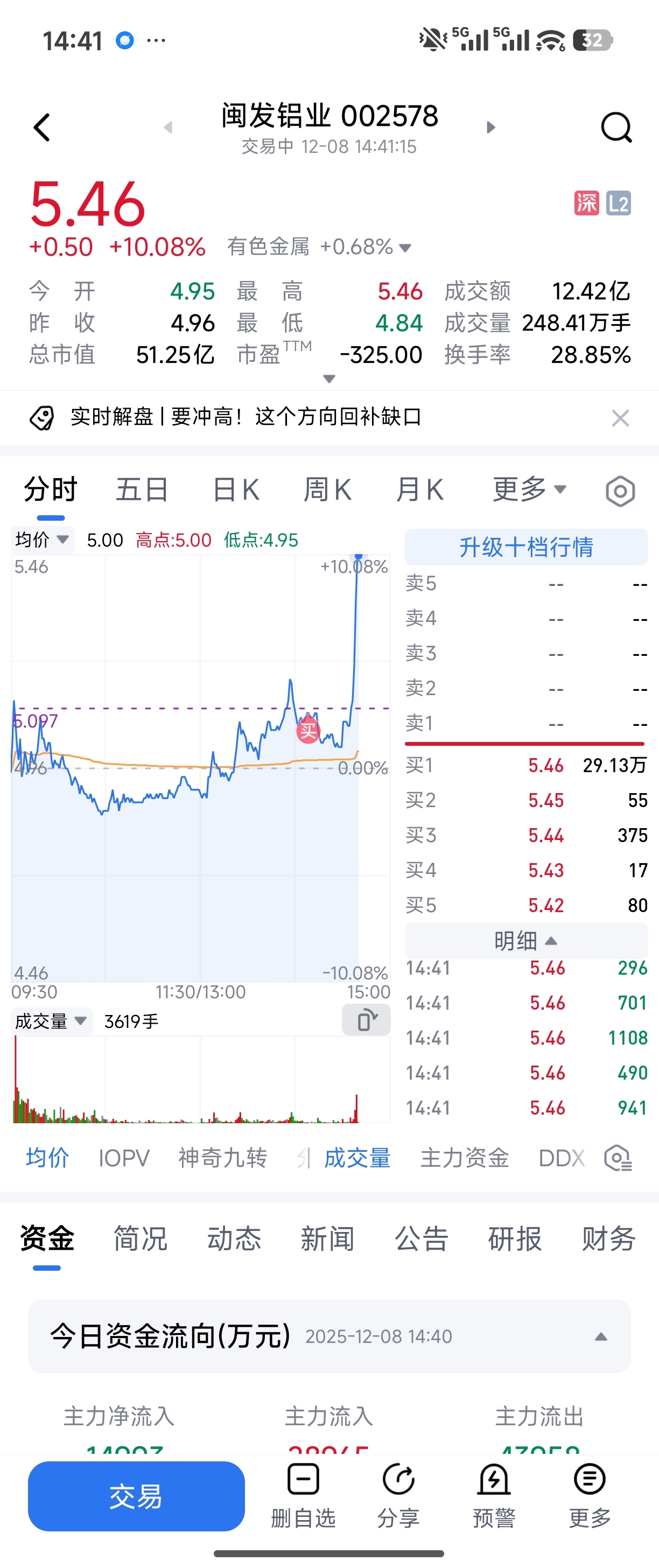 $闽发铝业(SZ002578)$ 进 30分钟涨停,明天要跑吗
