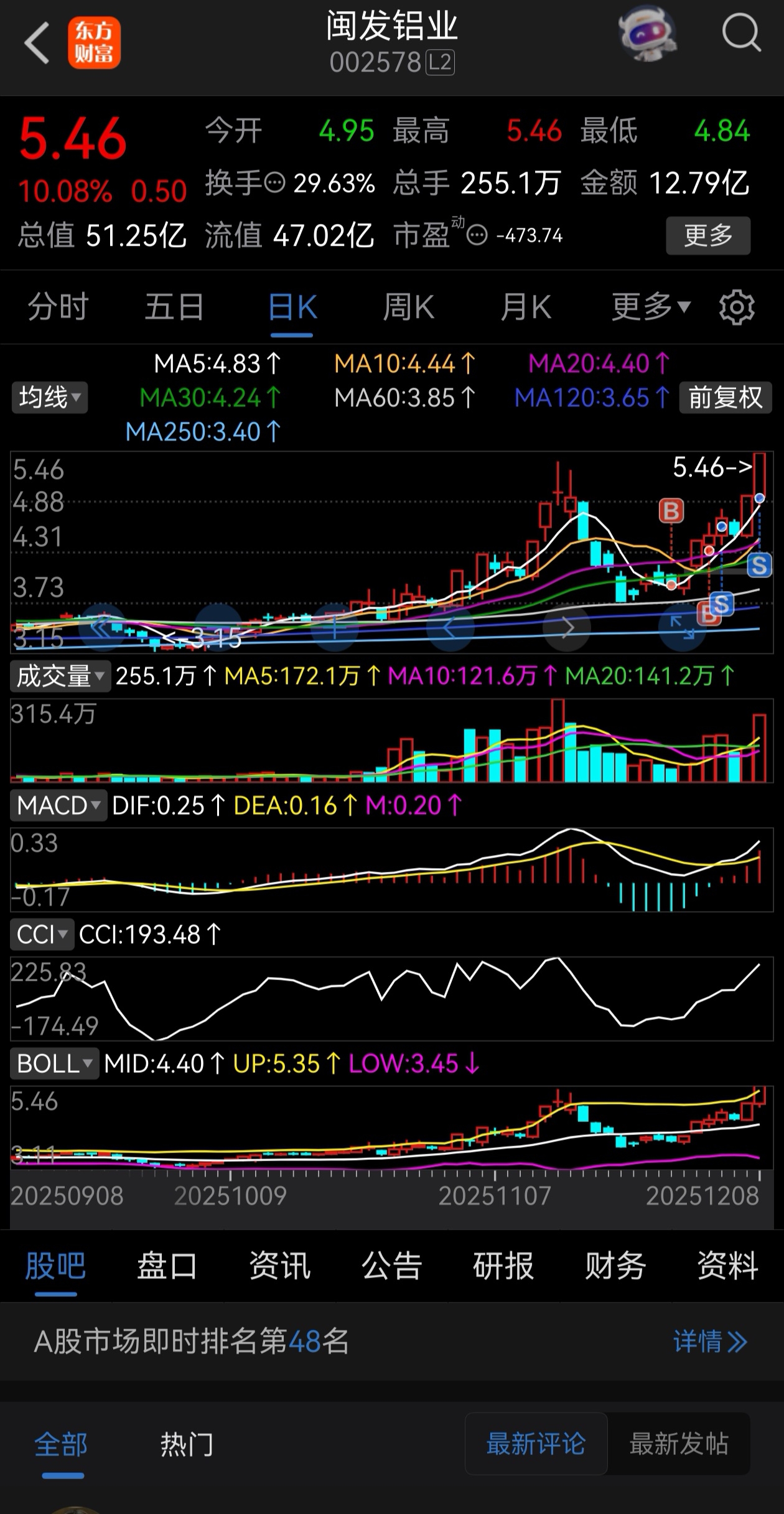 $闽发铝业(SZ002578)$ 居然尾盘偷袭,早盘看形式不对,虽然有承接,但看了一眼盘面,资金跑路一个多亿,感觉会走一个天线,早盘趋势走坏后就清仓了,也没敢再进,没想到尾盘拉起来了,又赚10%。