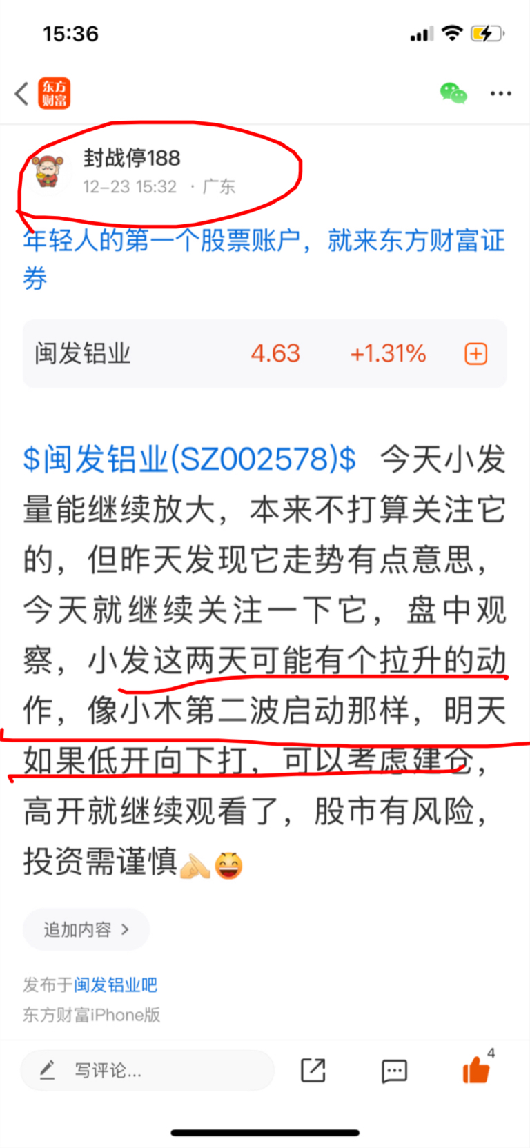 $闽发铝业(SZ002578)$ 今天小发收了个下长上短的十字星,看法不变,低开就是建仓的好机会,有底仓的也可以做T,股市有风险,投资需谨慎