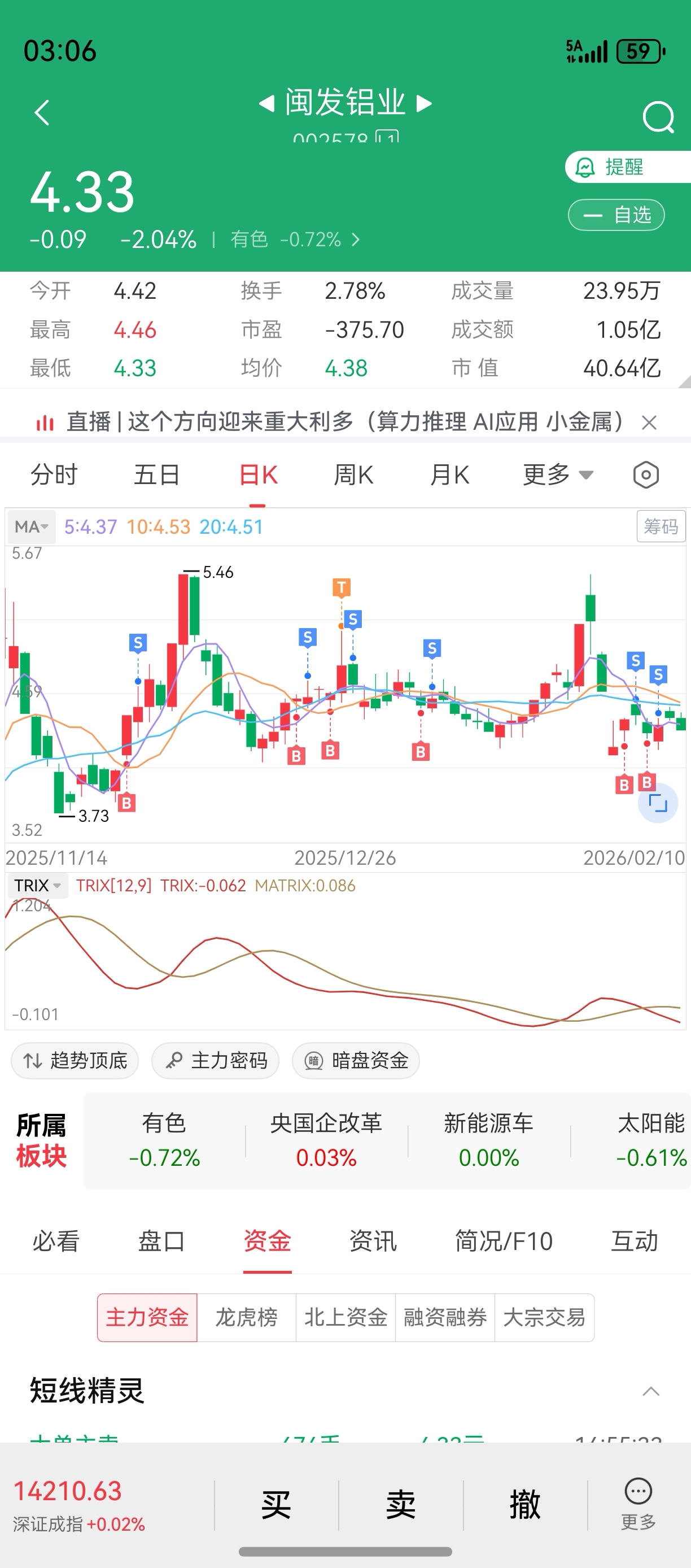 $闽发铝业(SZ002578)$ 不懂你们为啥会亏,低点进,不贪有赚跑,已经在闽发赚几千了,行情不好不死拿着就是了