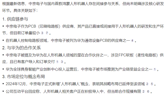 中京电子2024年3月就已经开始小批量供货人形机器人了,供货已经一年了: