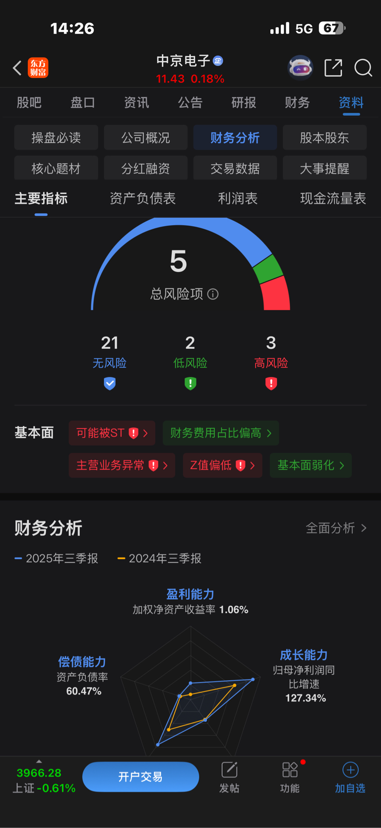 $中京电子(SZ002579)$ 兄弟们,这票大概率退市了,高风险,st 是大概率的,赶紧割肉跑路了,不要信狗托的忽悠,狗托忽悠了半年,跌了半年,错过了这么好的牛市