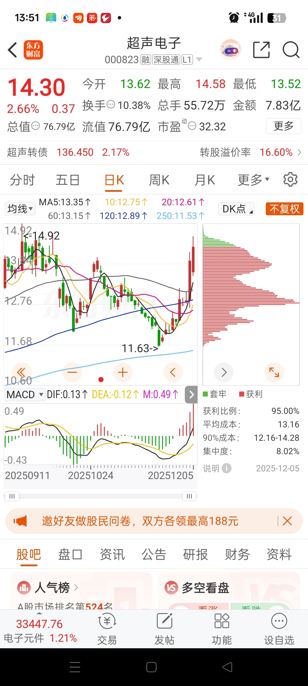 $中京电子(SZ002579)$ 中京电子被超声电子甩多少条街,我换到超声电子也好啧