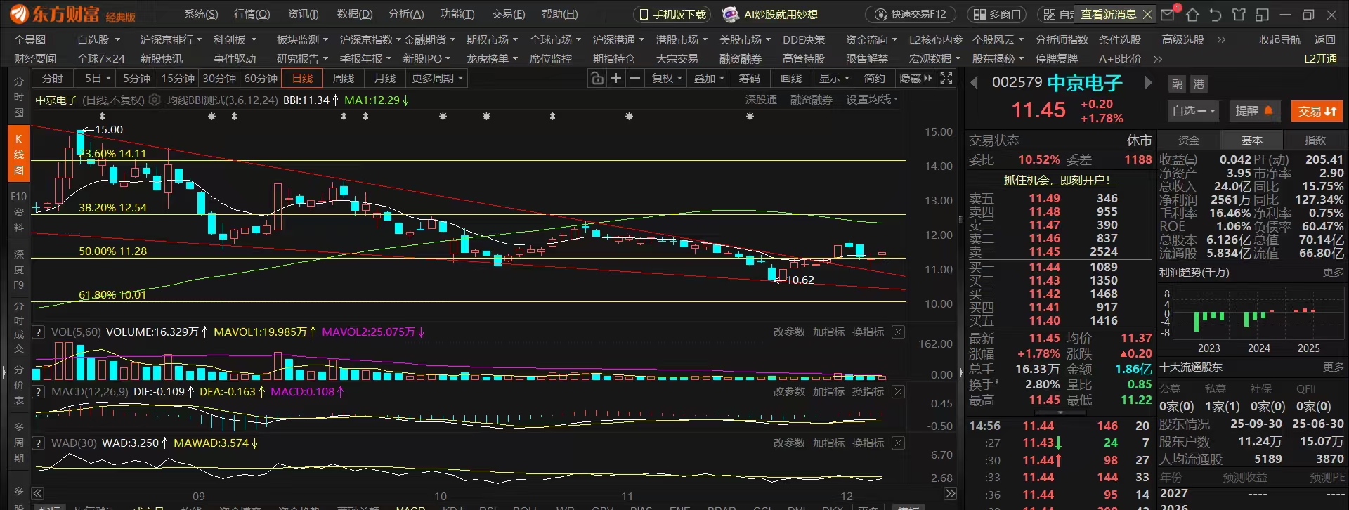中京电子周五给了一次回踩的机会后,小幅度放量反弹冲过了11.28,下一个阻力在前