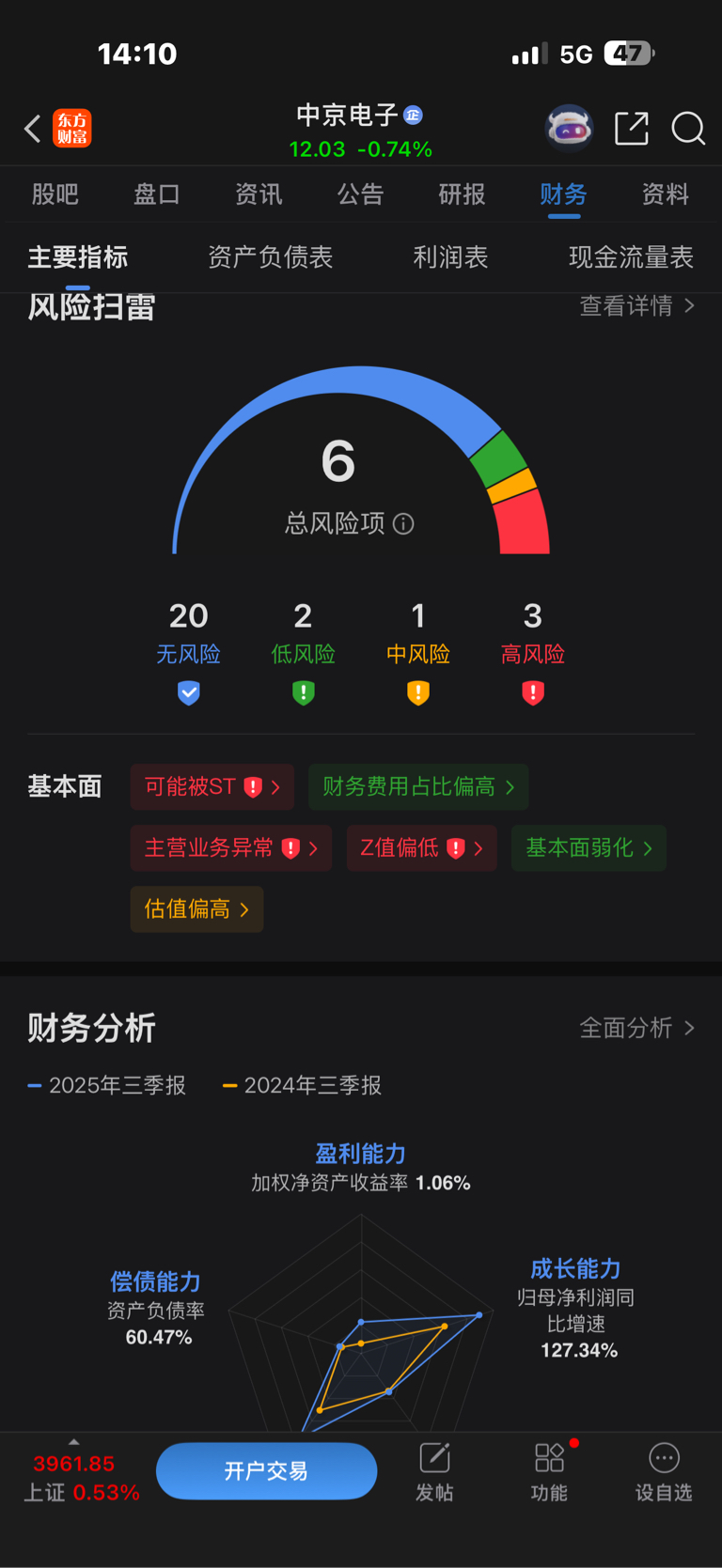 $中京电子(SZ002579)$ 东方财富说他可能 st,高风险多,不是开玩笑的