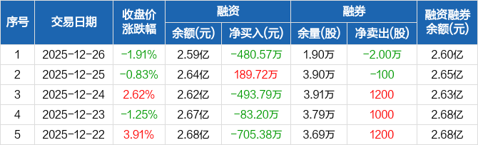 中京电子:融资净偿还480.57万元,融资余额2.59亿元(12-26)
