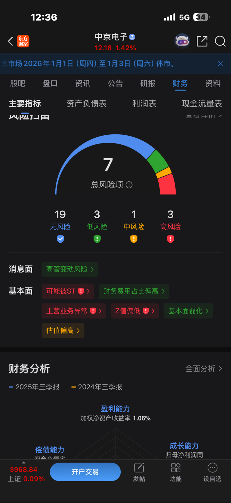 $中京电子(SZ002579)$ 高管持股 5.9 元,定增价 3.8 元,负债率 60% 多(高于房地产企业),市盈率 200 多倍(投资后 200 年才能回本),东方财富提示 st 预警,这都是数据和事实,哪些狗托儿天天喊大涨,涨停,有什么事实作为依据?就会忽悠,信了你就是被套!