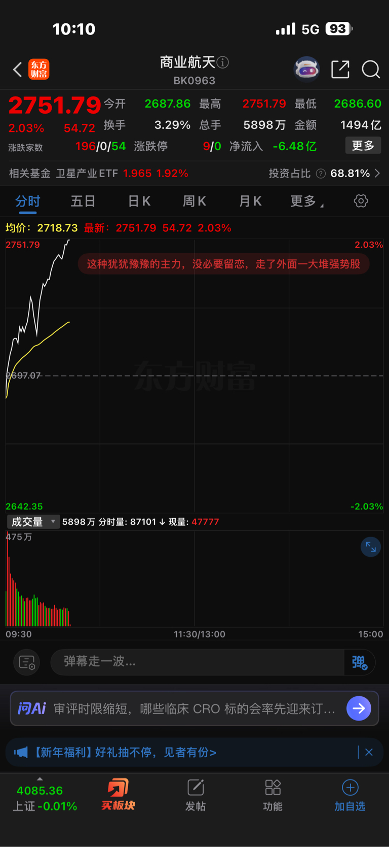 $中京电子(SZ002579)$ 不是给卫星供货了吗?今天商业航天这么厉害,为什么不跟呢?说白了,大资金不会去做一个有 st 风险,或者一个定增票,更何况这货两个都有,那么多好票,为什么要把自己置于危险中?
