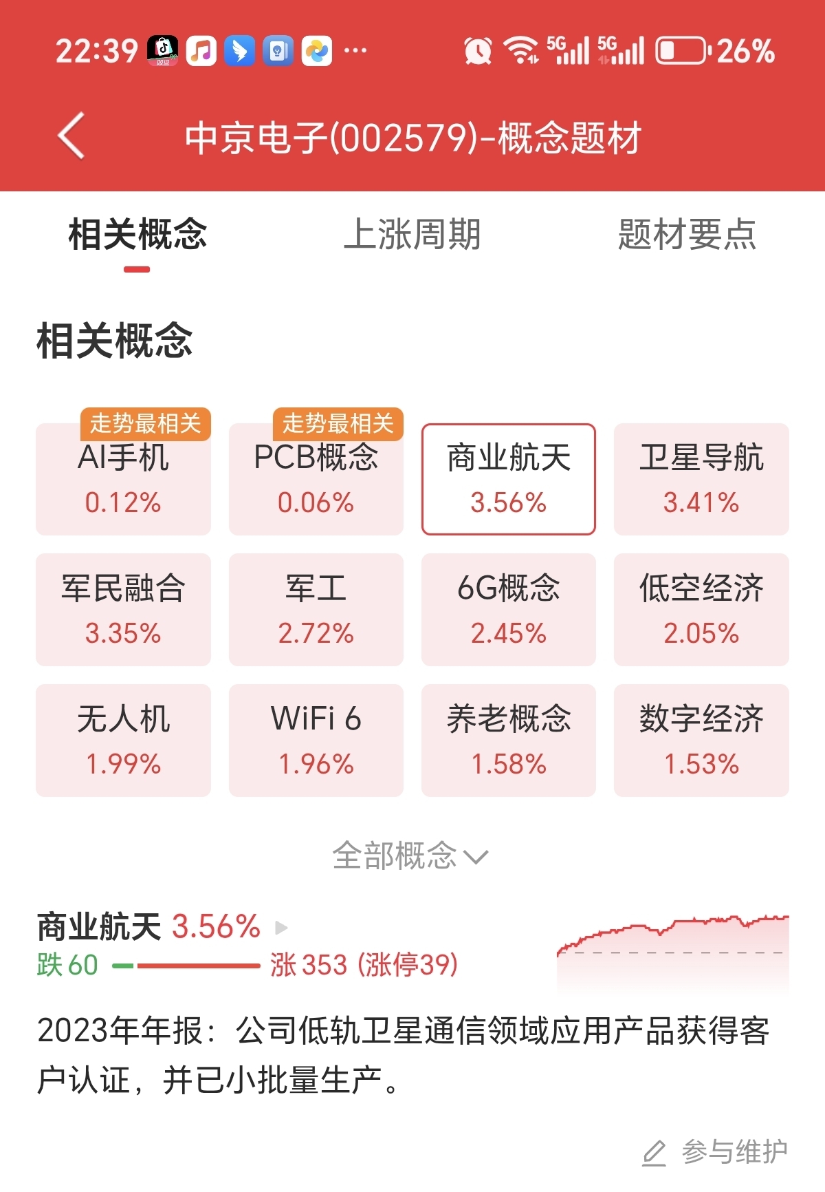 为什么中京电子同花顺有商业航天+卫星导航概念东方财富没有?