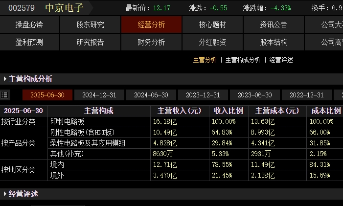 $中京电子(SZ002579)$ 归根到底只不过是蹭热点的而已,主营就是印刷电路板和参股了医疗影像设备公司,人家生产机器人用到它的电路板就说自己是机器人概念,什么类型的公司用到它的电路板,它就蹭那个热点,所以概念一大堆,人家那个热点概念涨,它就屁颠屁颠的跟在后面涨一点点,人家跌了,它就蹦得更欢向下跌!