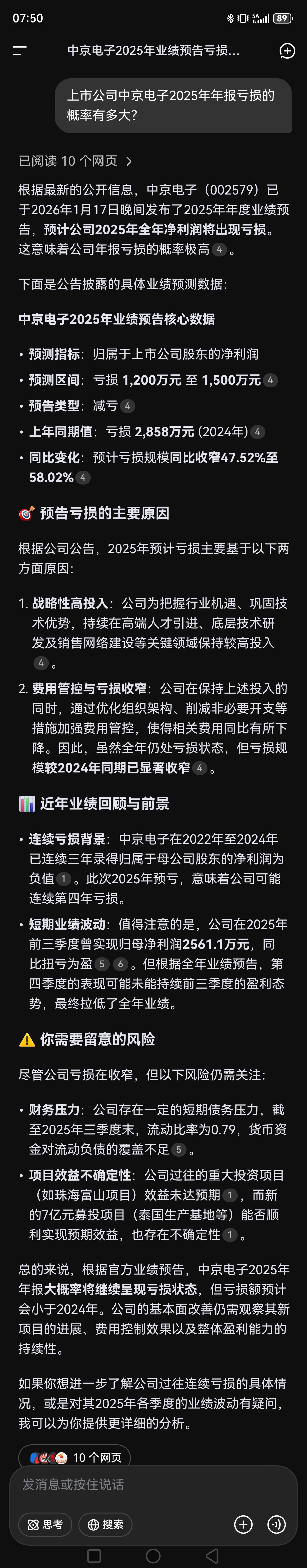 问了deepseek,今年中京电子亏损及st的可能性还是很大啊。