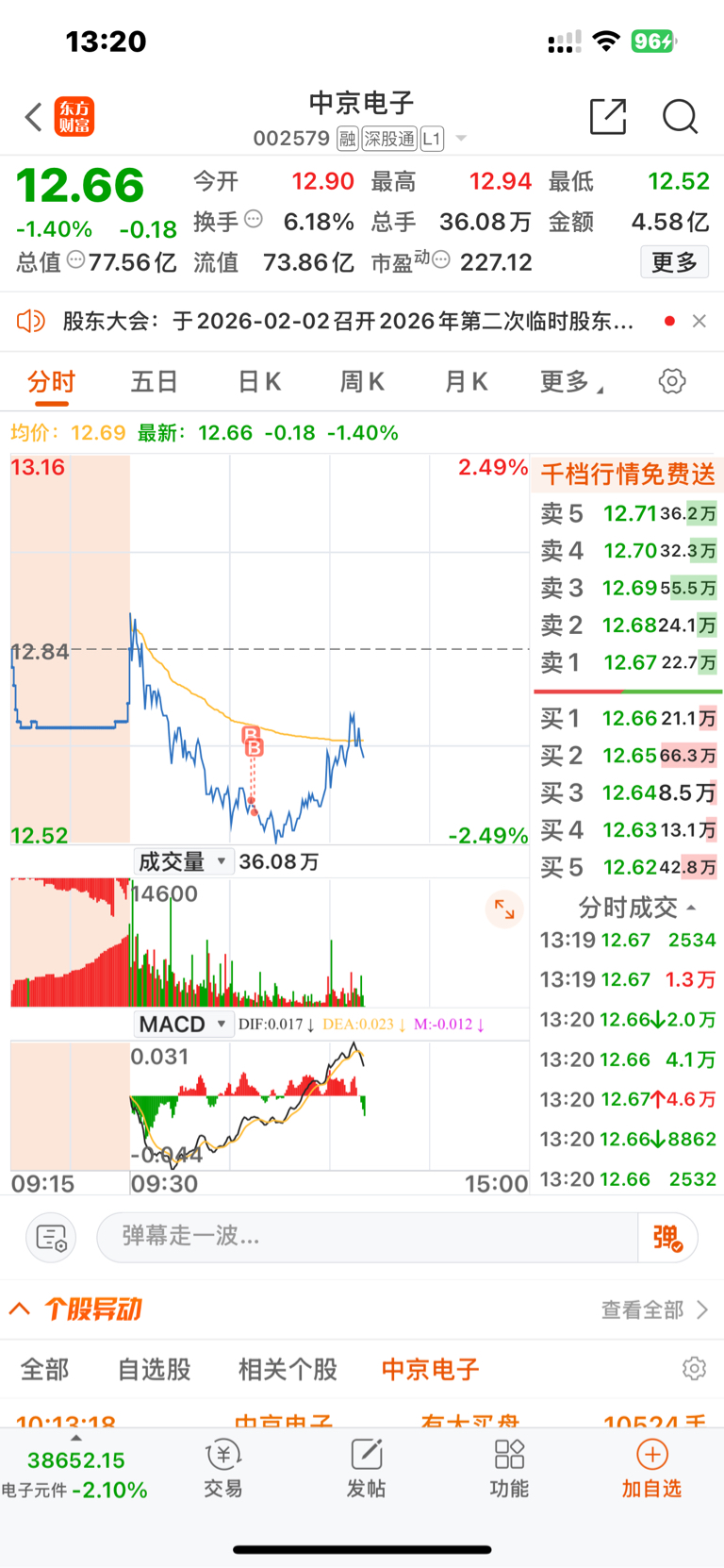 $中京电子(SZ002579)$ 明天的早饭有着落了吗