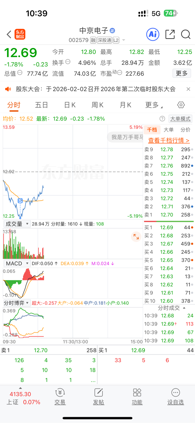 $中京电子(SZ002579)$ 我顶你个蛋蛋哦,以后盘中再卖是够!