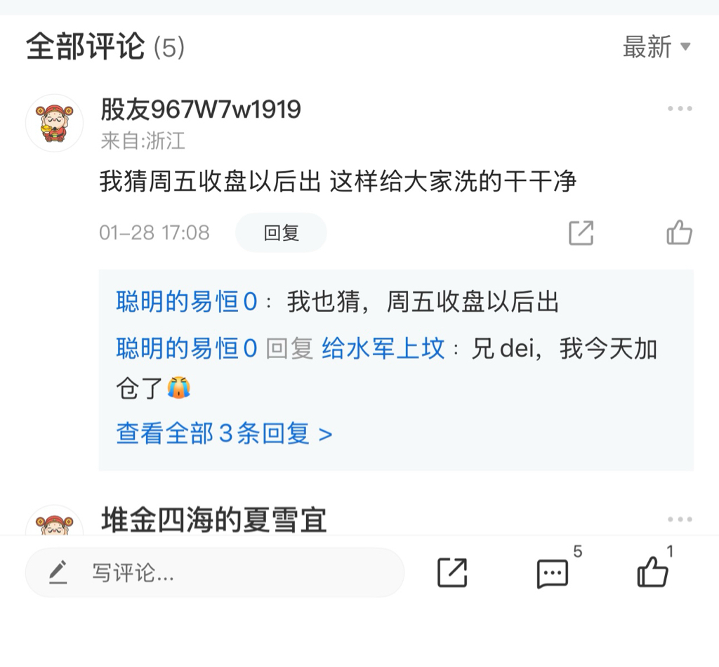 温馨提示: 1.根据《证券法》规定,禁止编造、传播虚假信息或者误导性信息,扰乱证券市场;2.用户在本社区发表的所有资料、言论等仅代表个人观点,与本网站立场无关,不对您构成任何投资建议。用户应基于自己的独立判断,自行决定证券投资并承担相应风险。《东方财富社区管理规定》
