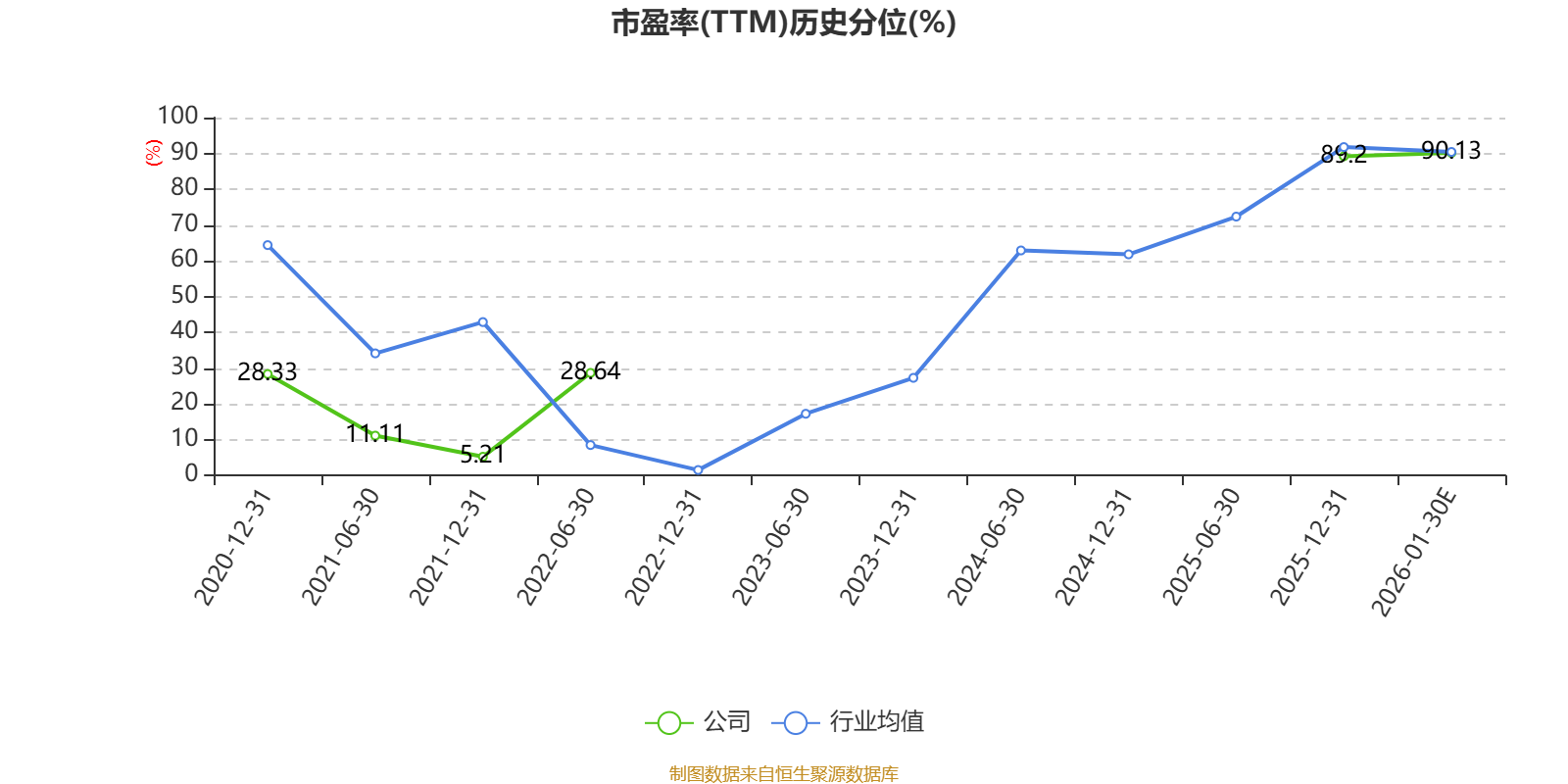 以本次披露业绩预告均值计算,公司近年市盈率(TTM)图如下所示: