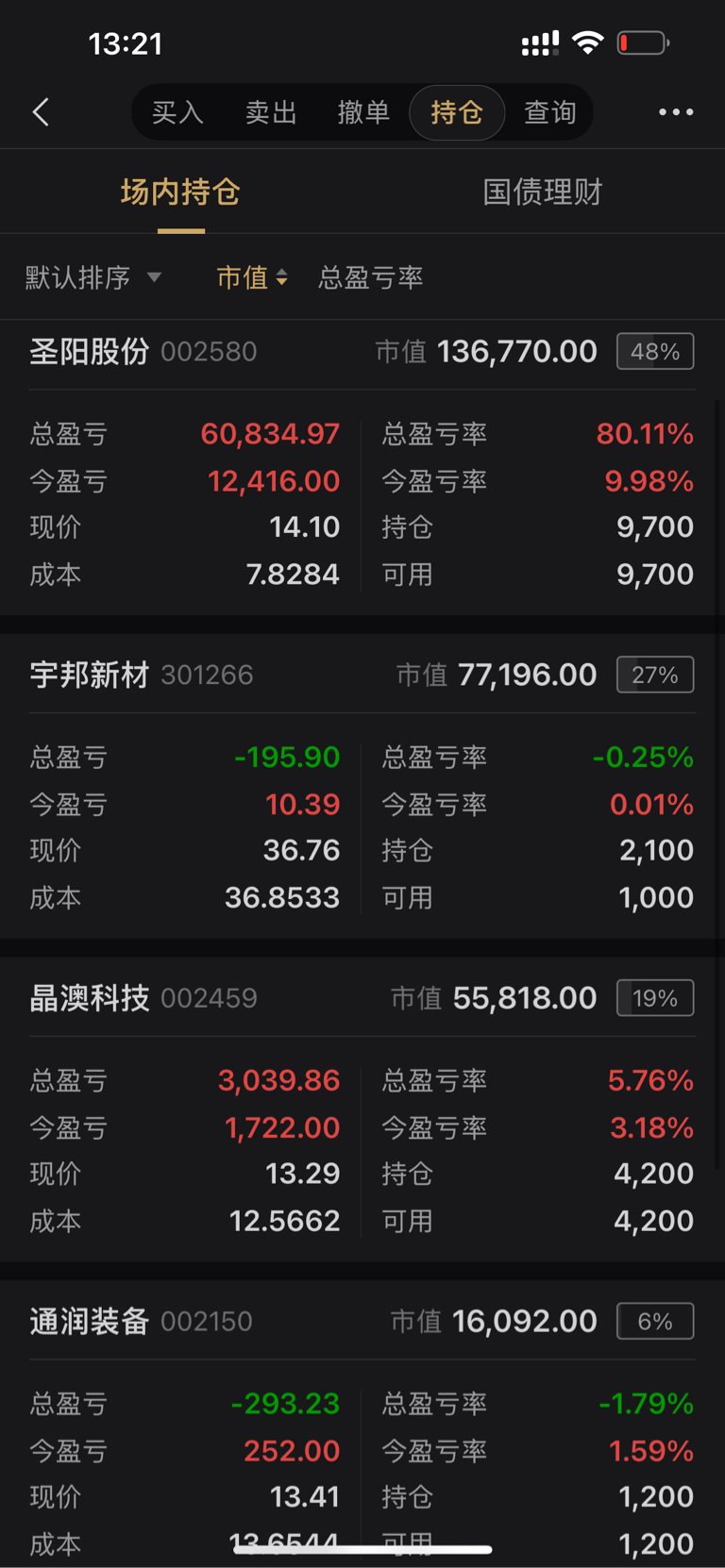 $圣阳股份(SZ002580)$ 刚刚卖出$通达电气(SH603390)$ 实在熬不住,虽然通达有可能起飞,这个位置,从吃个反包板没走扛到现在,但是还是更想聚焦底部光伏,a股这轮牛市要突破,必须带上光伏,否则游戏结束,所以迫切想要加仓$宇邦新材(SZ301266)$ ,目前圣阳继续格局,晶澳科技,通润装备持股不动!