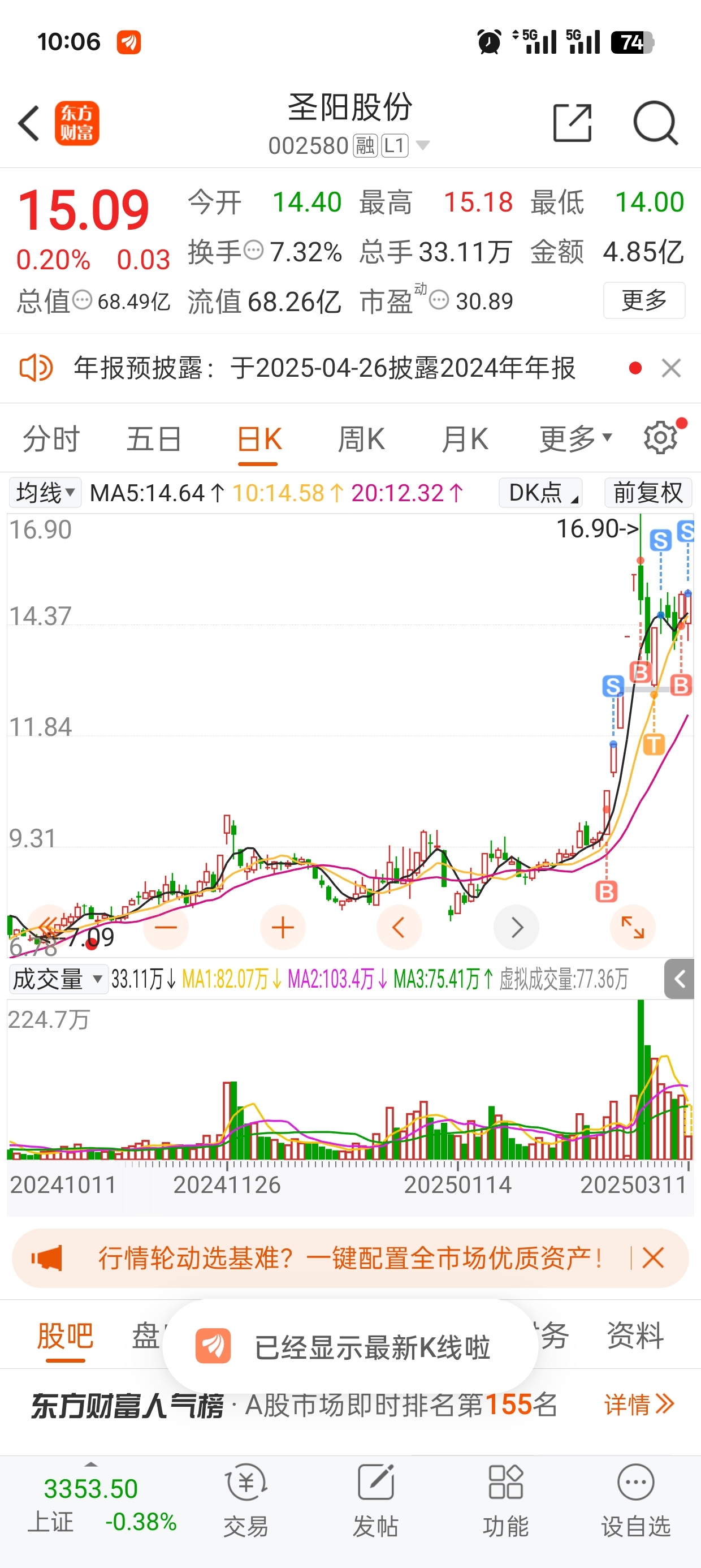 $圣阳股份(SZ002580)$ 昨天最低点进,今天目前最高点出