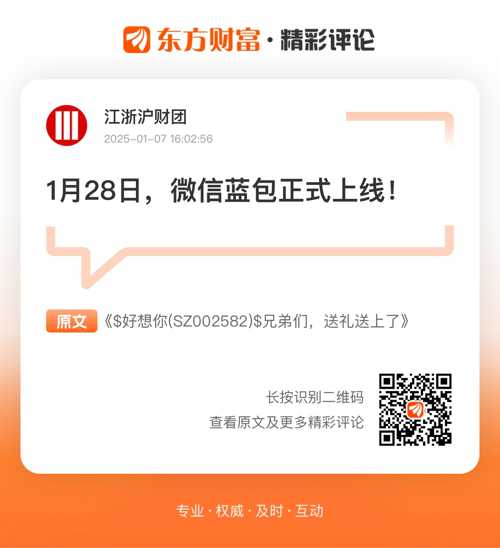 提前了10天,我擦,牛皮//@江浙沪财团 : 1月28日,微信蓝包正式上线!