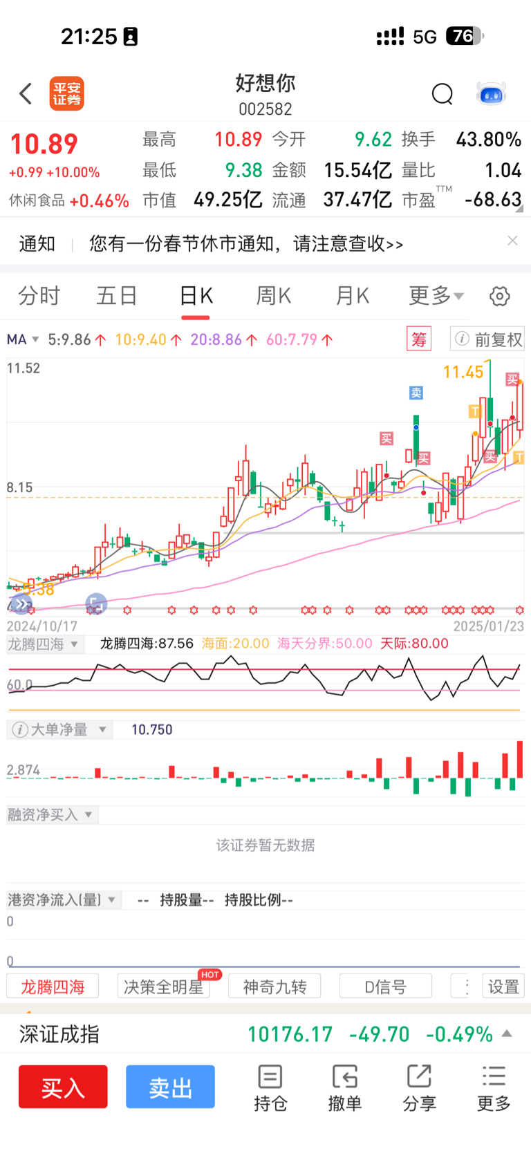 好想你波动超级大,不是涨停就是跌停或者大跌。我为何敢一直拿着?!因为我看到了本质的一些东西。因此在它跌停的时候,我敢于平静地加仓。