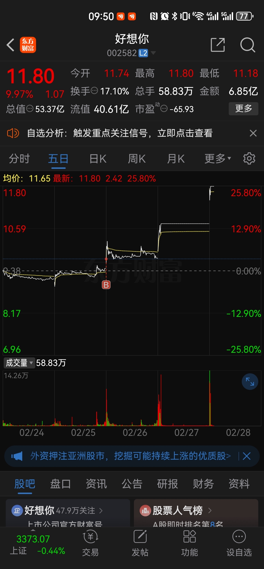 温馨提示: 1.根据《证券法》规定,禁止编造、传播虚假信息或者误导性信息,扰乱证券市场;2.用户在本社区发表的所有资料、言论等仅代表个人观点,与本网站立场无关,不对您构成任何投资建议。用户应基于自己的独立判断,自行决定证券投资并承担相应风险。《东方财富社区管理规定》