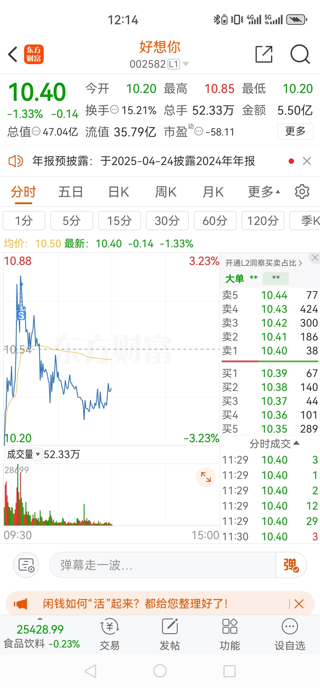 $好想你(SZ002582)$ 卖了三分之一,下来先不接了,下午再看