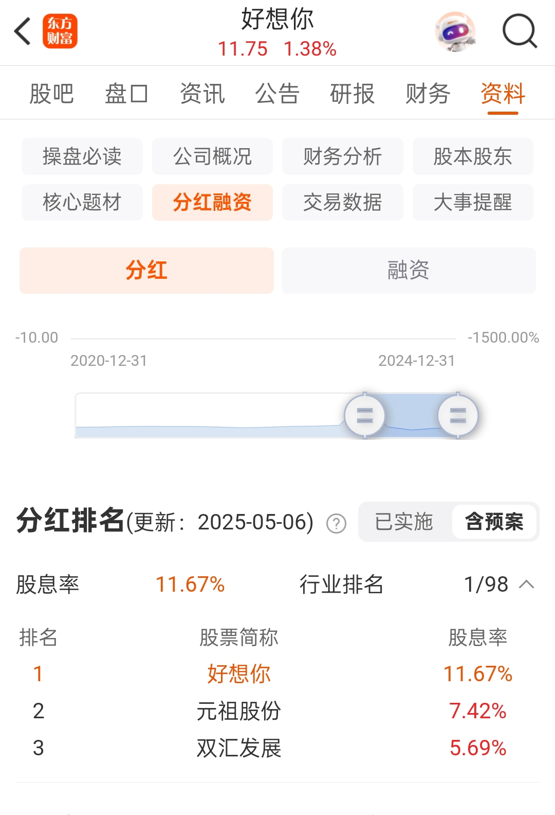 $好想你(SZ002582)$ 股息率第一名,不得不刮目相看。重视起来。