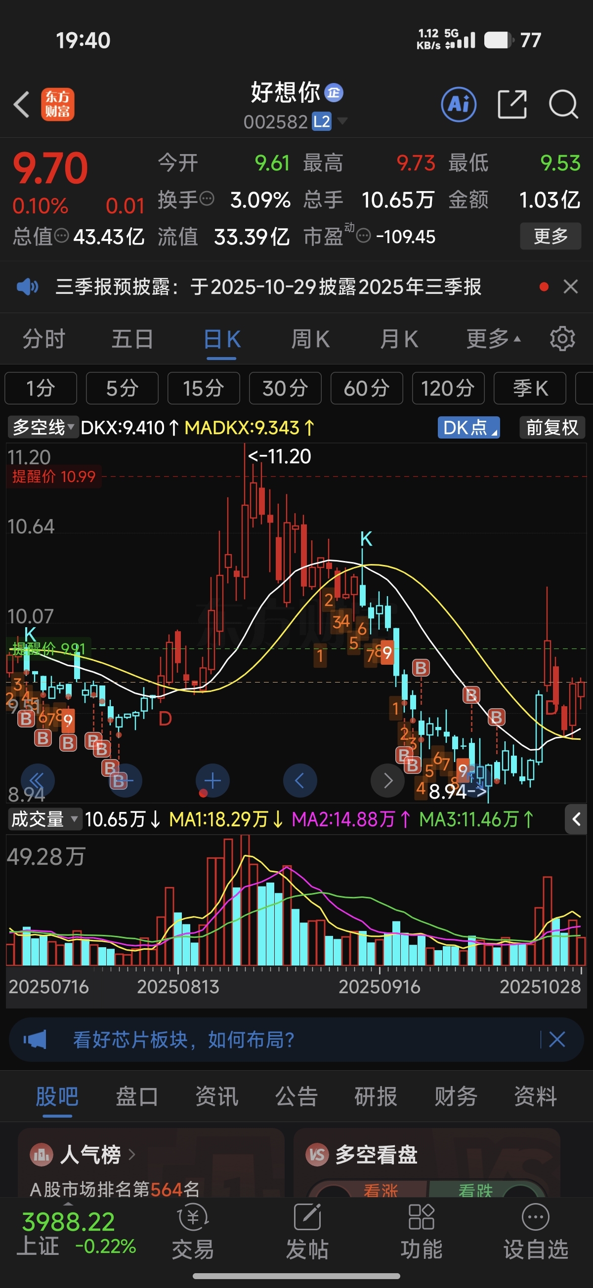 $好想你(SZ002582)$ 一股没敢卖。跌了继续买。人傻钱多。