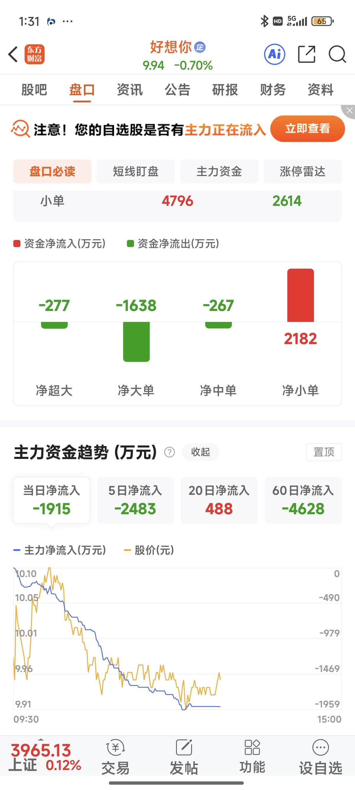 $好想你(SZ002582)$ 主力资金跑的差不多了,跟随市场行情走了