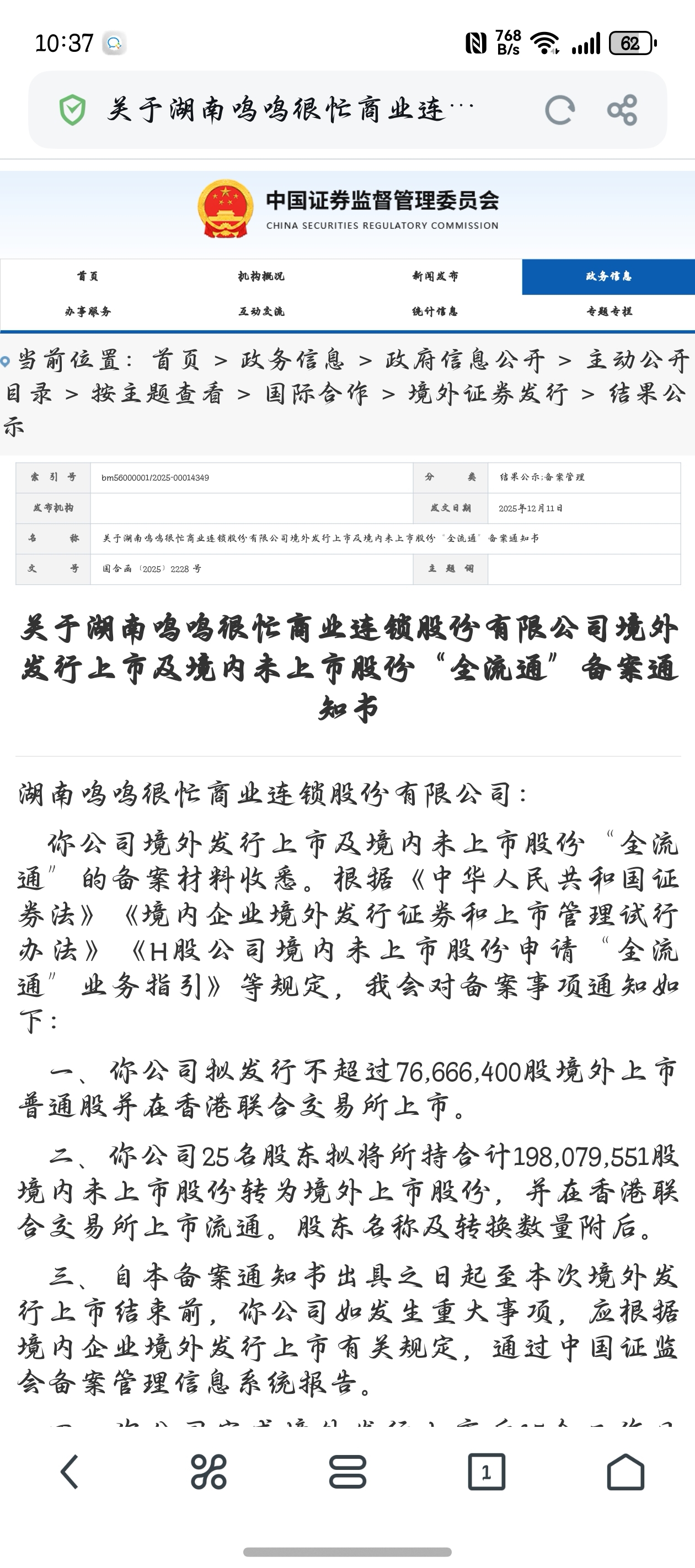 $好想你(SZ002582)$ 鸣鸣集团的备案已通过
