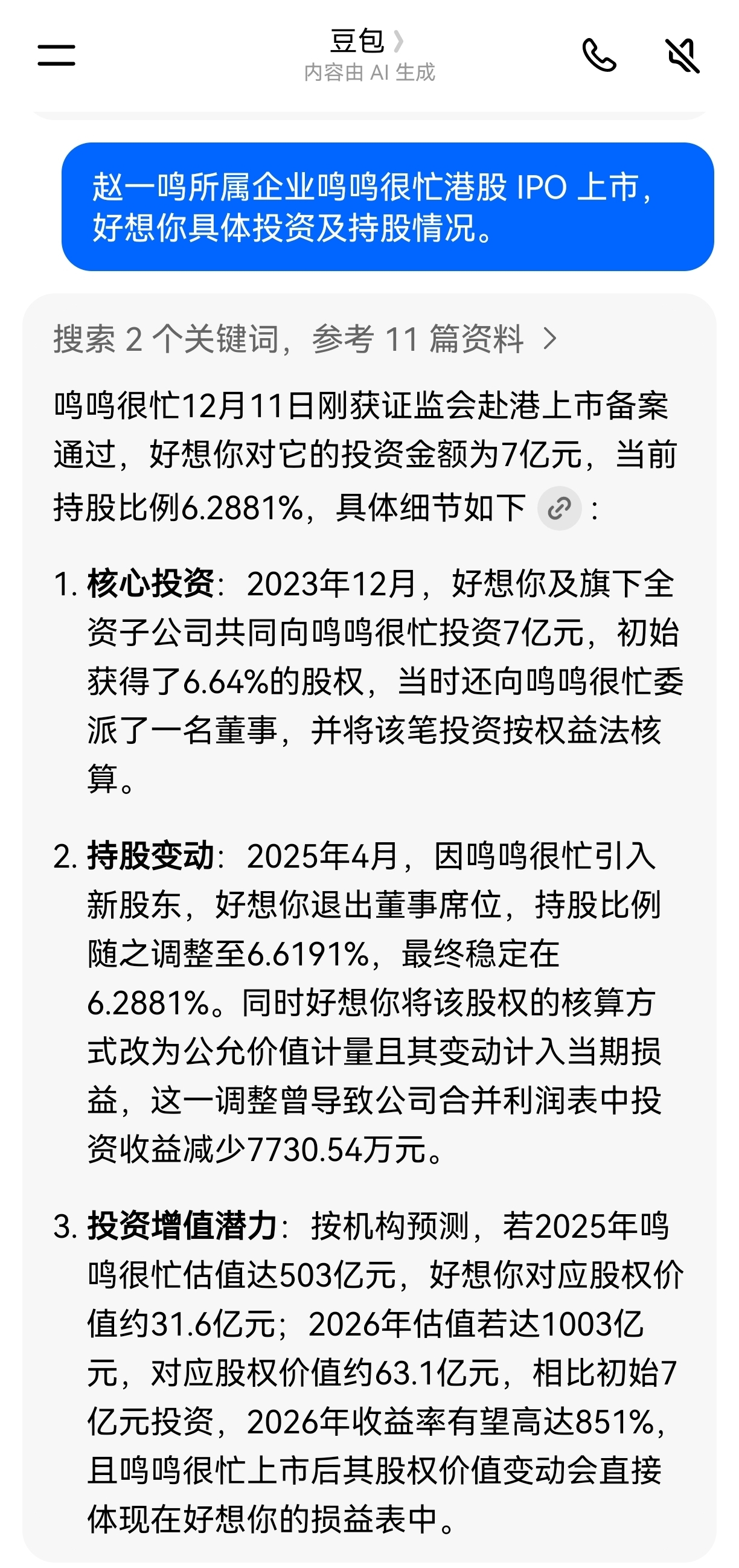 $好想你(SZ002582)$ 赵一鸣所属企业鸣鸣很忙IPO上市影子股,投资7亿持股6.28%,有望获上市带来的高额投资收益,12月食品饮料有行情话可以逢低关注,量化行情不追高。$欢乐家(SZ300997)$ $阳光乳业(SZ001318)$