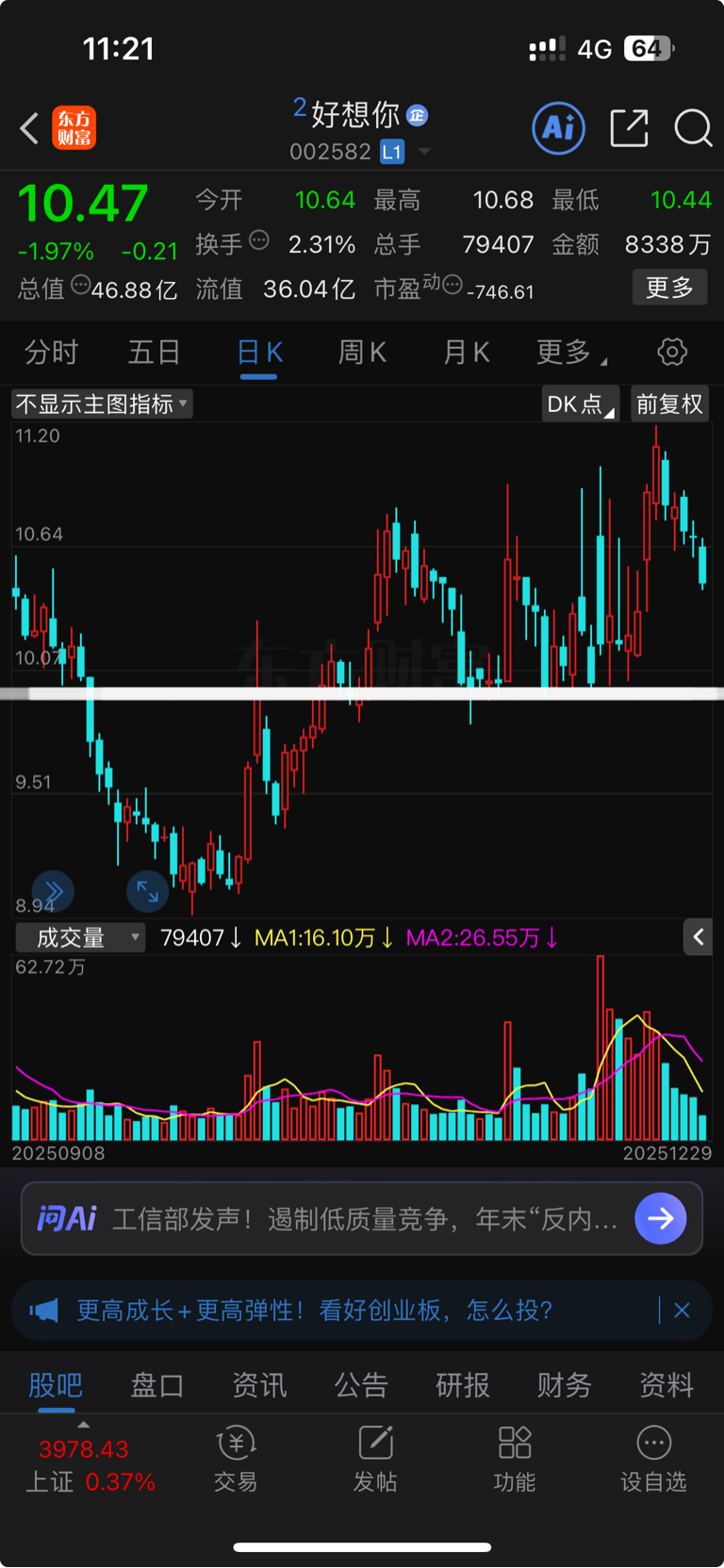 $好想你(SZ002582)$ 大家不用怕,10块这里是一个平台型支撑,大概率不会跌破,如果跌到10块钱我会疯狂加仓,并截图为证。